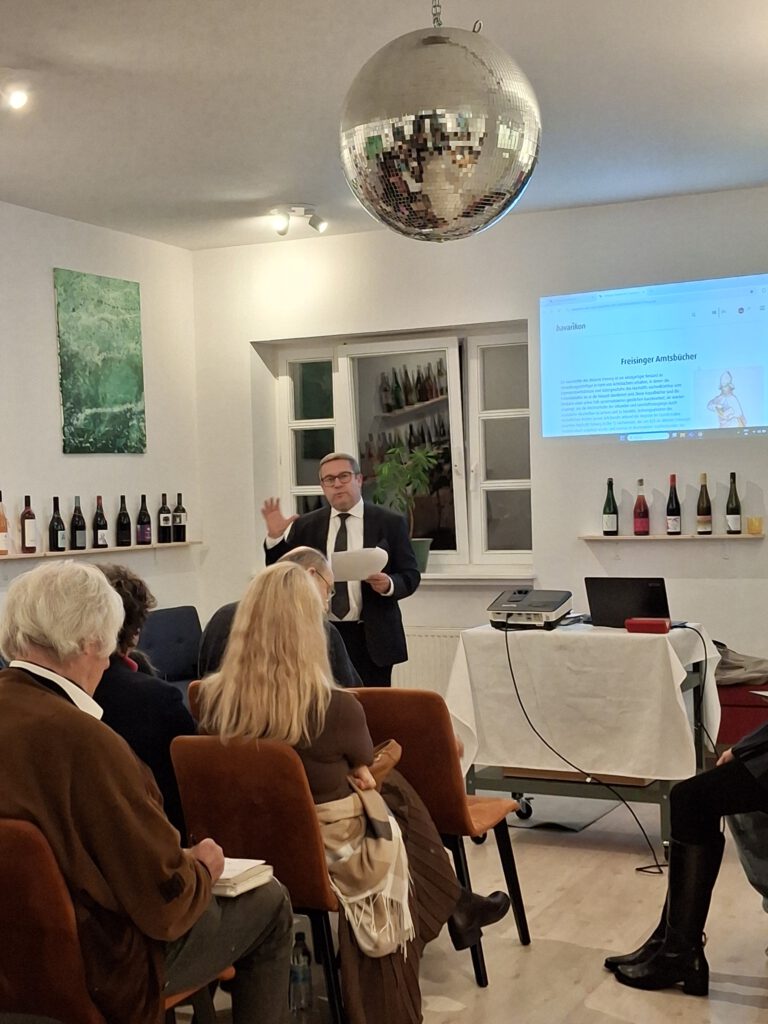 In ihrem Vortrag: “Kulturelles Erbe und Heimat. Die Freisinger Amtsbücher auf bavarikon”, gewährte Frau Krah einen faszinierenden Einblick in ihre Forschungen zu den frühmittelalterlichen Freisinger Amtsbüchern und der Präsentation ihrer Arbeit auf bavarikon, dem kulturellen Onlineportal des Freistaats Bayern.